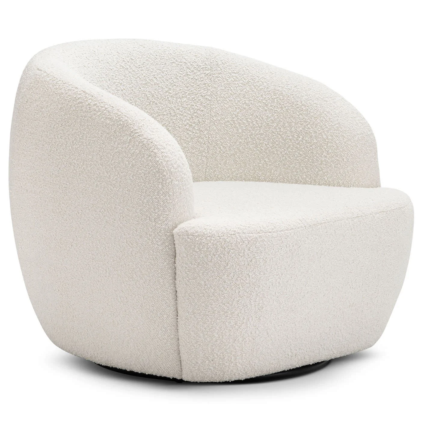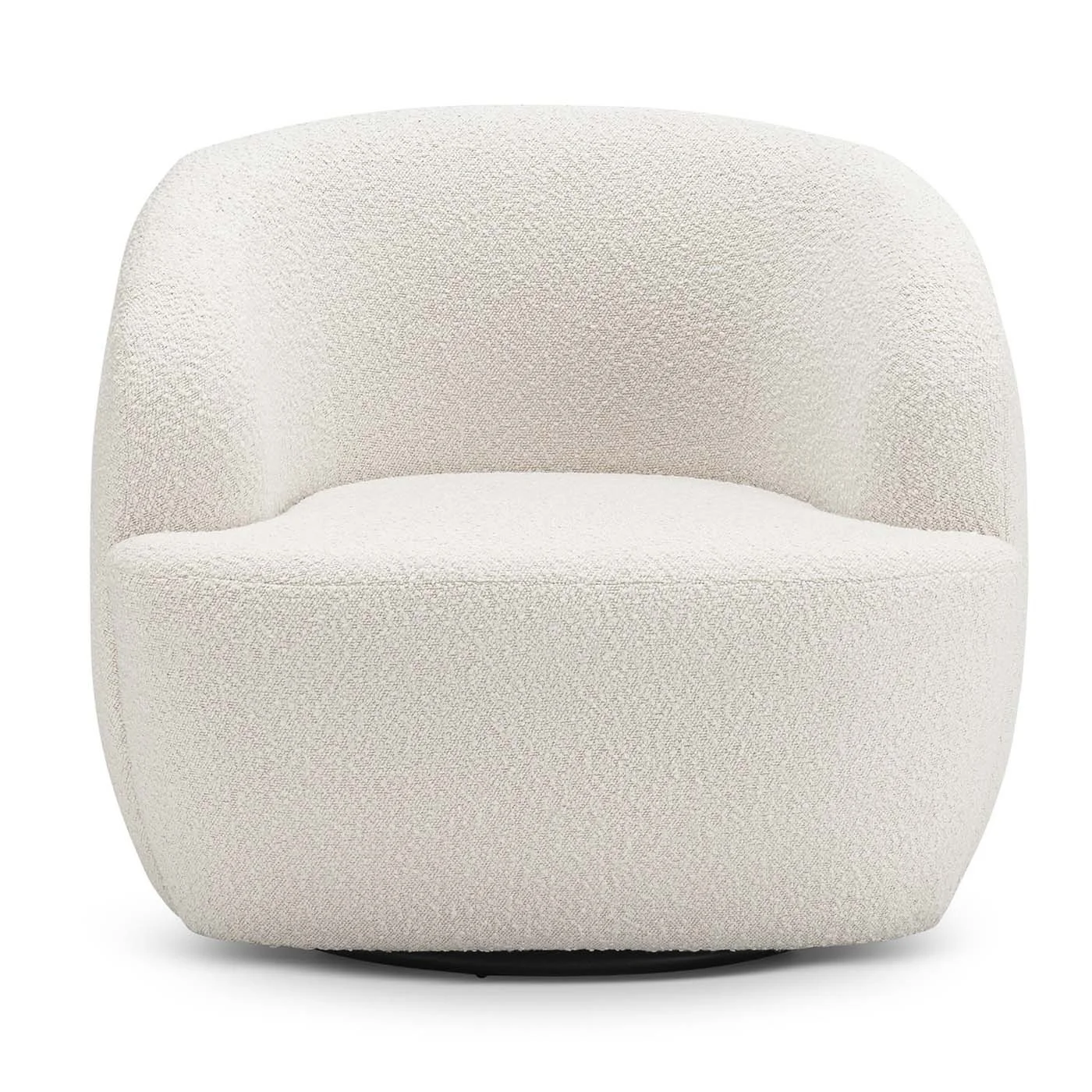 Inject cuddly cloud-like charm into your interior space with the Cuddle Swivel Armchair, a fashion forward design with a timeless appeal. Swathed in luscious tactile knobbly premium Boucle, the Cuddle features a soft rounded silhouette with generous proportions, cushy curved back, supportive armrests and a ultra-comfy seat that just like its namesake, cuddles you. A built in hidden swivel base mechanism provides smooth turning functionality that is sure to turn heads. Cuddle is the ultimate chic statement piece for your living room or use it soften down a bedroom space.